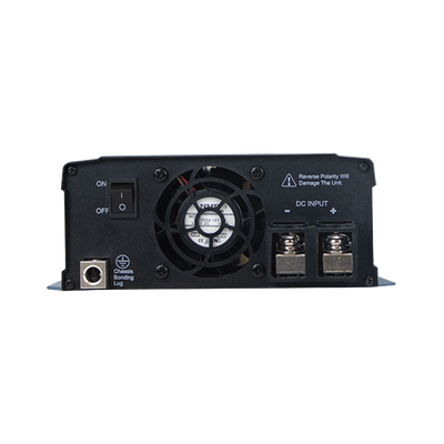 Inversor onda senoidal pura 24 Vcc → 120 Vca 60 Hz, 1500 W continuos, alto pico de arranque, ventilador controlado por temperatura y <1.5 W en espera. RS-232 y control remoto opcionales; protecciones completas (LVD, polaridad inversa, sobretensión, sobrecarga, sobretemperatura).