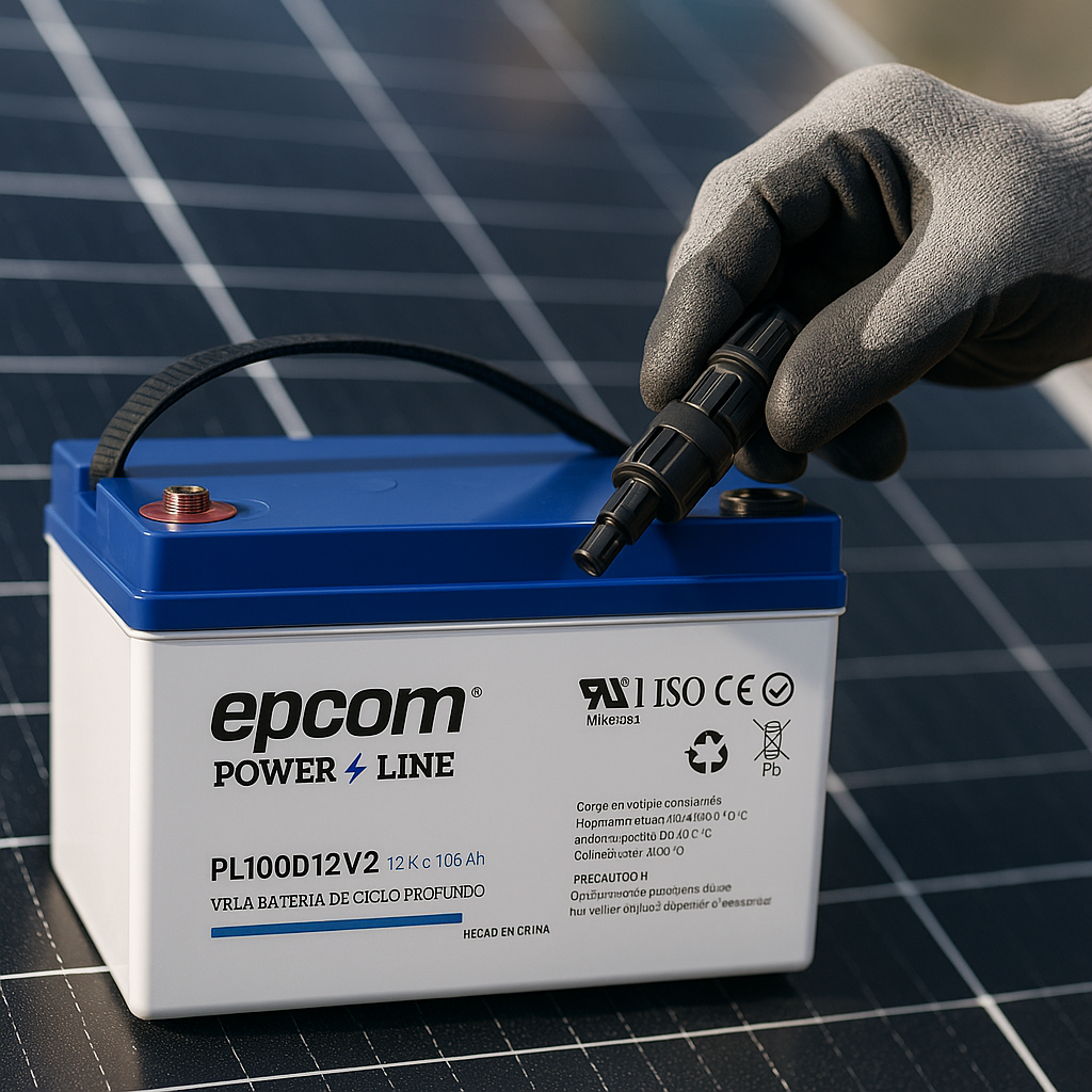 Nota de instalación: use terminales y torque adecuados; verifique compatibilidad del cargador/UPS con baterías AGM-VRLA (tensiones de carga de flotación/cíclica según hoja técnica). Mantenga ventilación suficiente y no perforar el contenedor.
