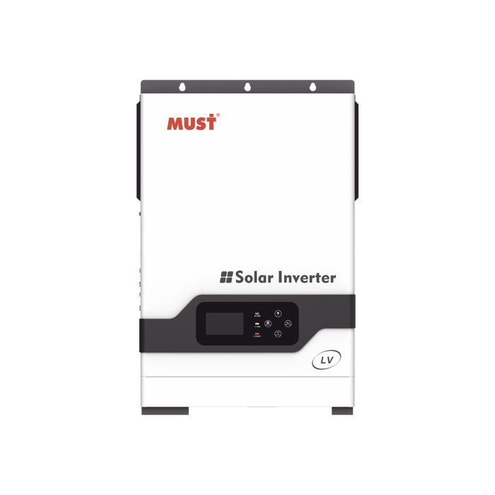 El PV1800 LV (1 kW) es un inversor/cargador todo-en-uno para sistemas tipo isla que combina inversor de onda sinusoidal pura, controlador solar MPPT y cargador de baterías. Su pantalla LCD con botones configurables permite definir corriente de carga, prioridad de fuente (CA/Solar) y rango de voltaje de entrada aceptable, brindando operación simple y confiable en gabinetes de control, telecom, CCTV, sitios remotos y residencias off-grid.